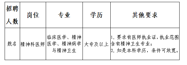 根據(jù)業(yè)務發(fā)展需要,持續(xù)加強我市心理健康和精神衛(wèi)生服務能力建設,更好地滿足我市廣大人民群眾看病就醫(yī)需求,我院特面向社會公開招聘數(shù)名編制外聘用工作人員,現(xiàn)將有關事項公告如下:
