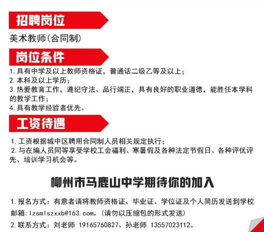 2025年柳州市馬鹿山中學招聘美術(shù)教師