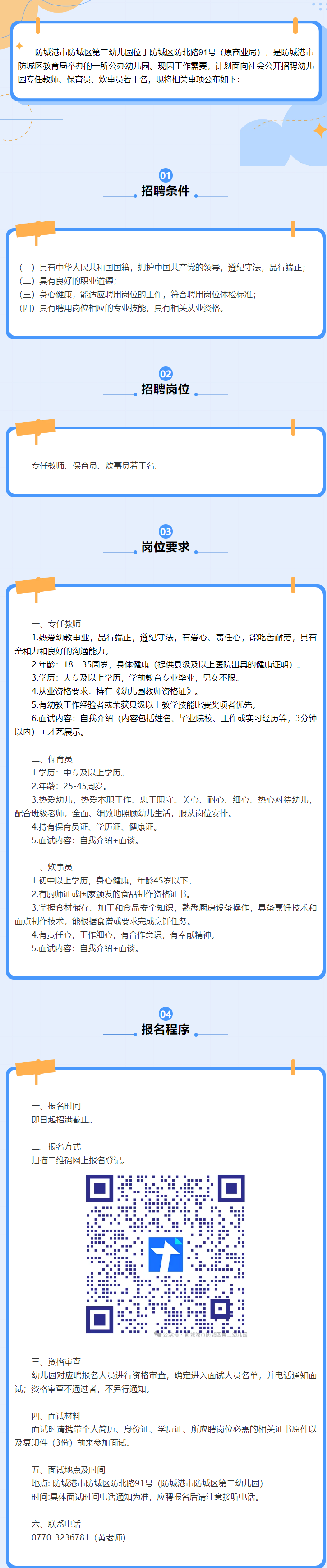 原文標題:防城區(qū)第二幼兒園2025年秋季學(xué)期教職工招聘公告