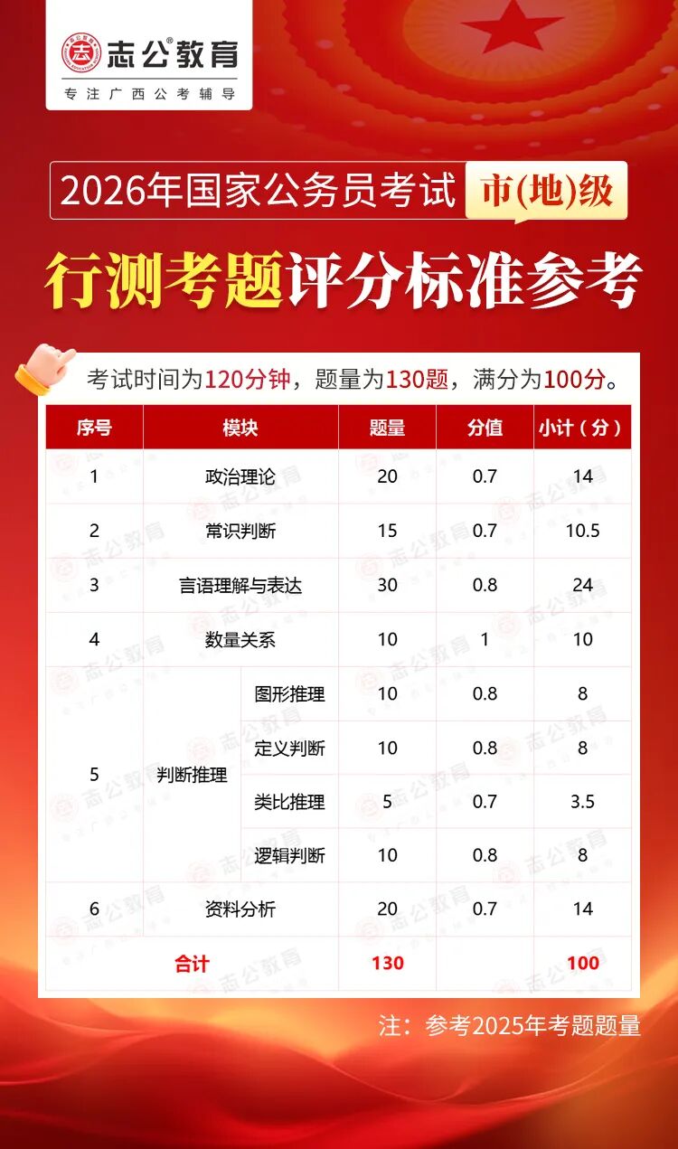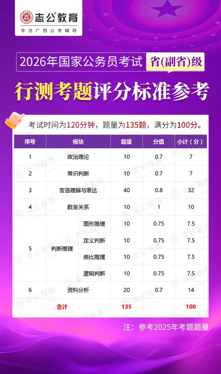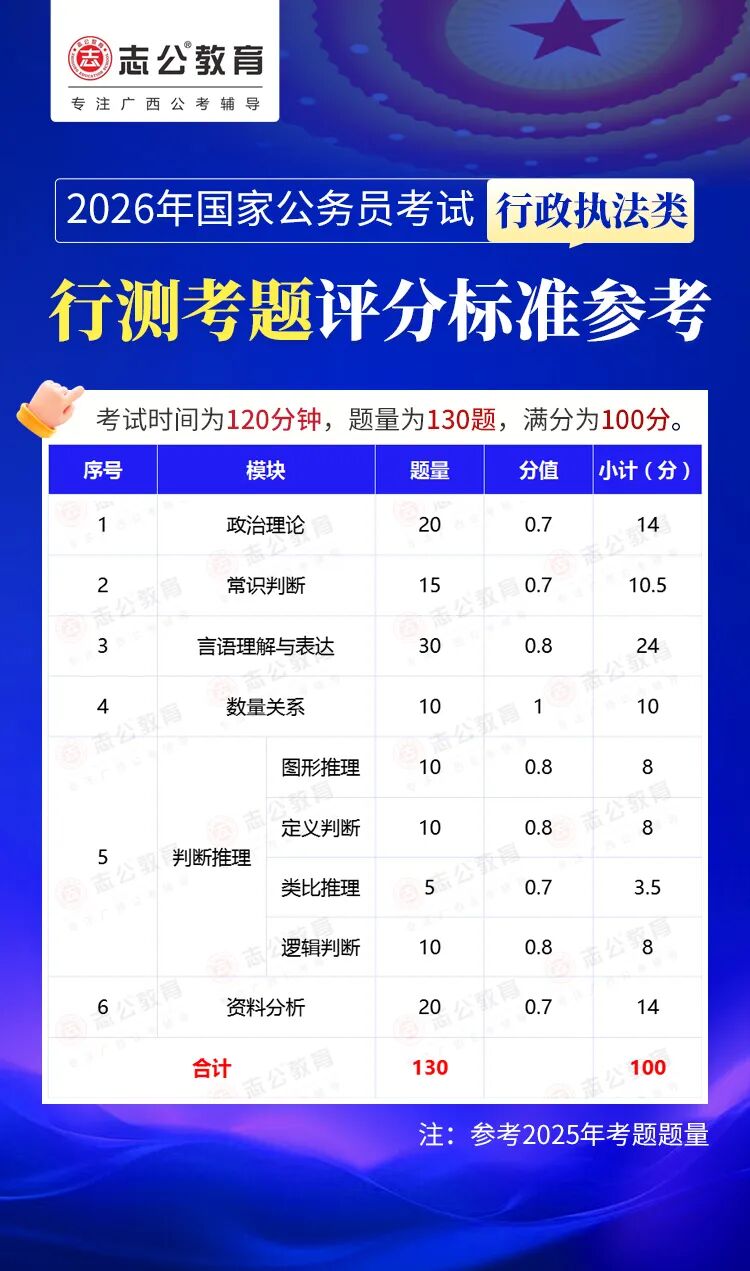 無論報(bào)名人數(shù)是否會(huì)增加,提升自身實(shí)力才是應(yīng)對2026年國考的關(guān)鍵。行測作為國考公共科目筆試的核心模塊,不僅分值占比高(通常為 100 分),更是考生之間拉開分差的關(guān)鍵戰(zhàn)場。它并非單純考查知識儲(chǔ)備,而是通過言語理解、判斷推理、數(shù)量關(guān)系、資料分析、常識判斷、政治理論六大板塊,綜合評估考生的信息處理速度、邏輯思維能力、應(yīng)急決策水平等綜合素質(zhì)。