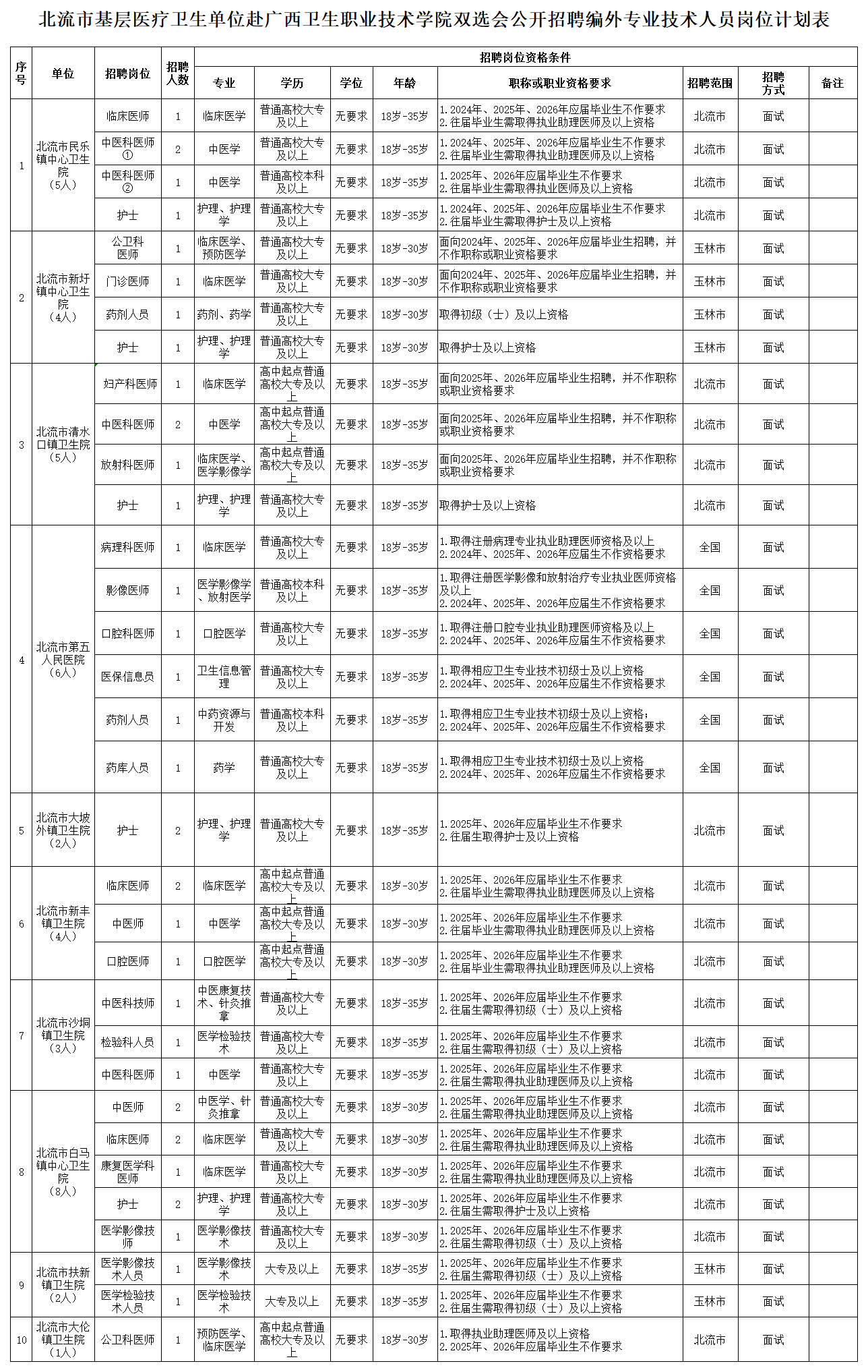 附件:1.北流市基層醫(yī)療衛(wèi)生單位赴廣西衛(wèi)生職業(yè)技術(shù)學(xué)院雙選會(huì)公開(kāi)招聘編外專業(yè)技術(shù)人員崗位計(jì)劃表