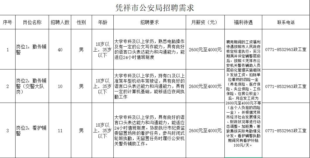 通過資格審查的人員,憑祥市公安局將統一進行筆試、體能測試及面試。