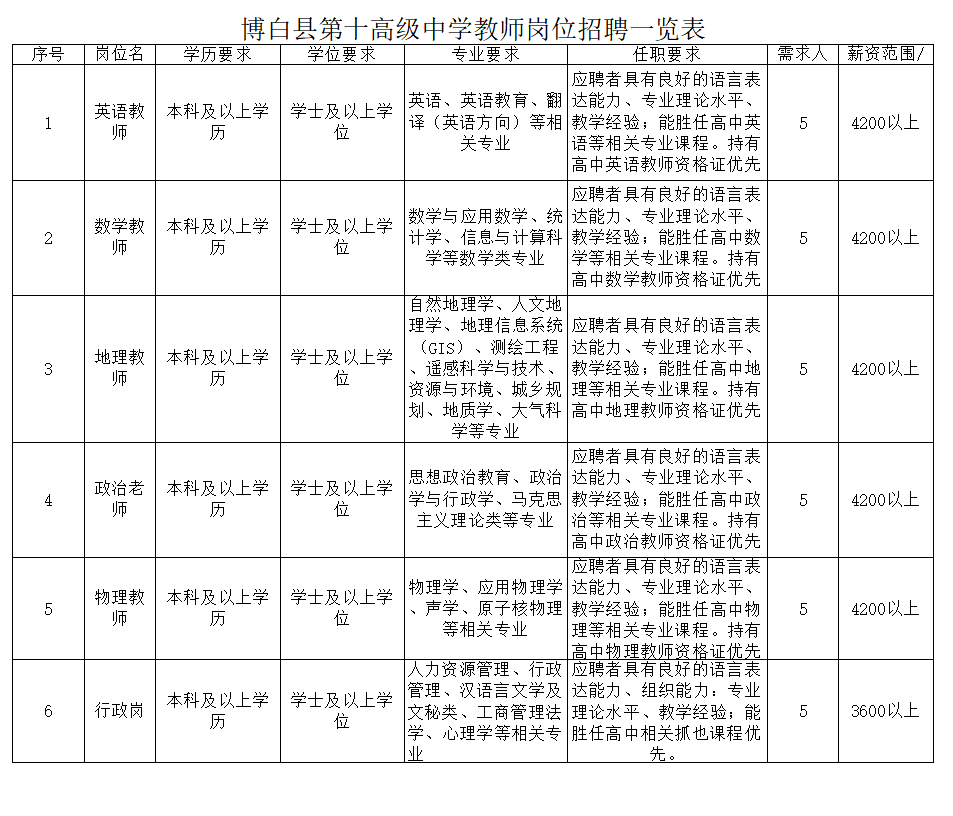 原文標(biāo)題:急聘!急聘英才 共創(chuàng)未來(lái)|博白縣第十高級(jí)中學(xué)2025年教師招聘啟事